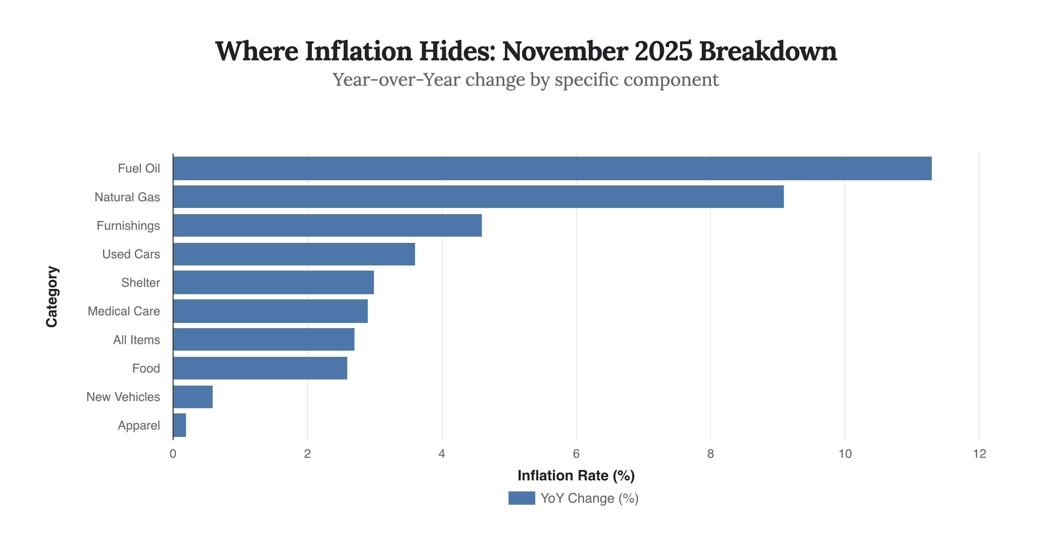 Fuel oil alone surged 11.3% year-over-year, and natural gas followed with a 9.1% rise. These are non-negotiable expenses as we head into the winter months.
