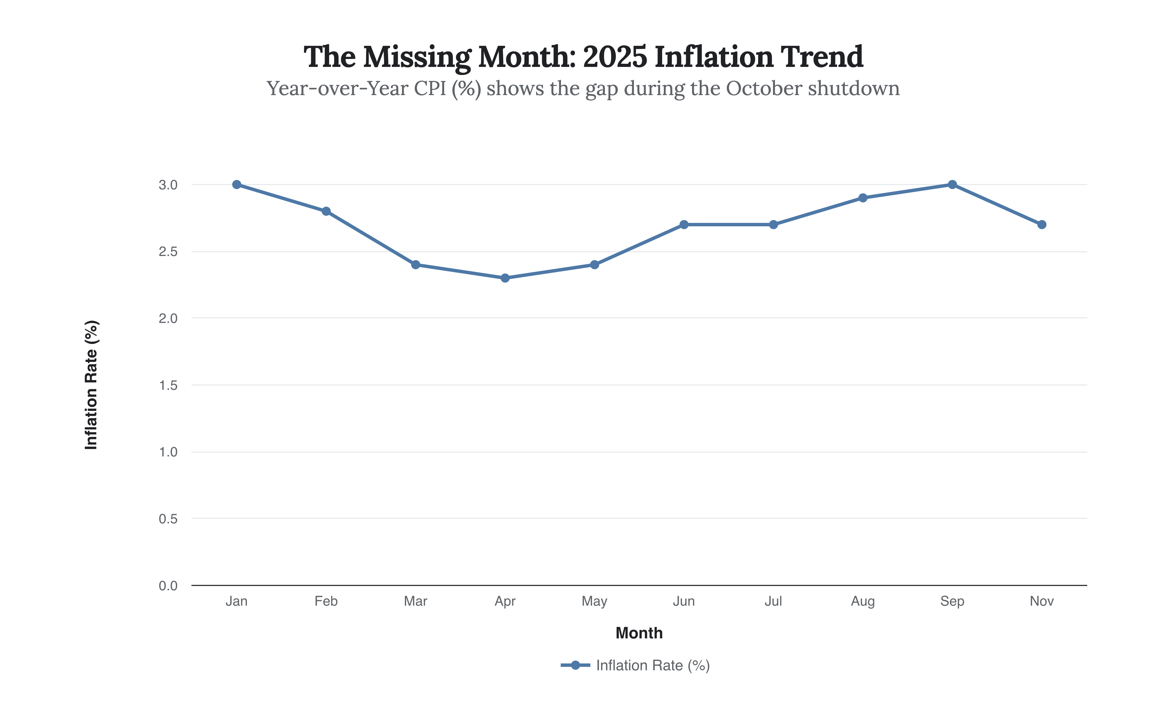 The visual gap in the chart above is not a glitch; it is the scar of the 43-day shutdown. The absence of October data creates a discontinuity that statisticians will struggle with for years, but the trend line connecting September to November tells a story of relief. After climbing steadily through the late summer to reach 3.0% in September, the inflation rate has snapped back down.