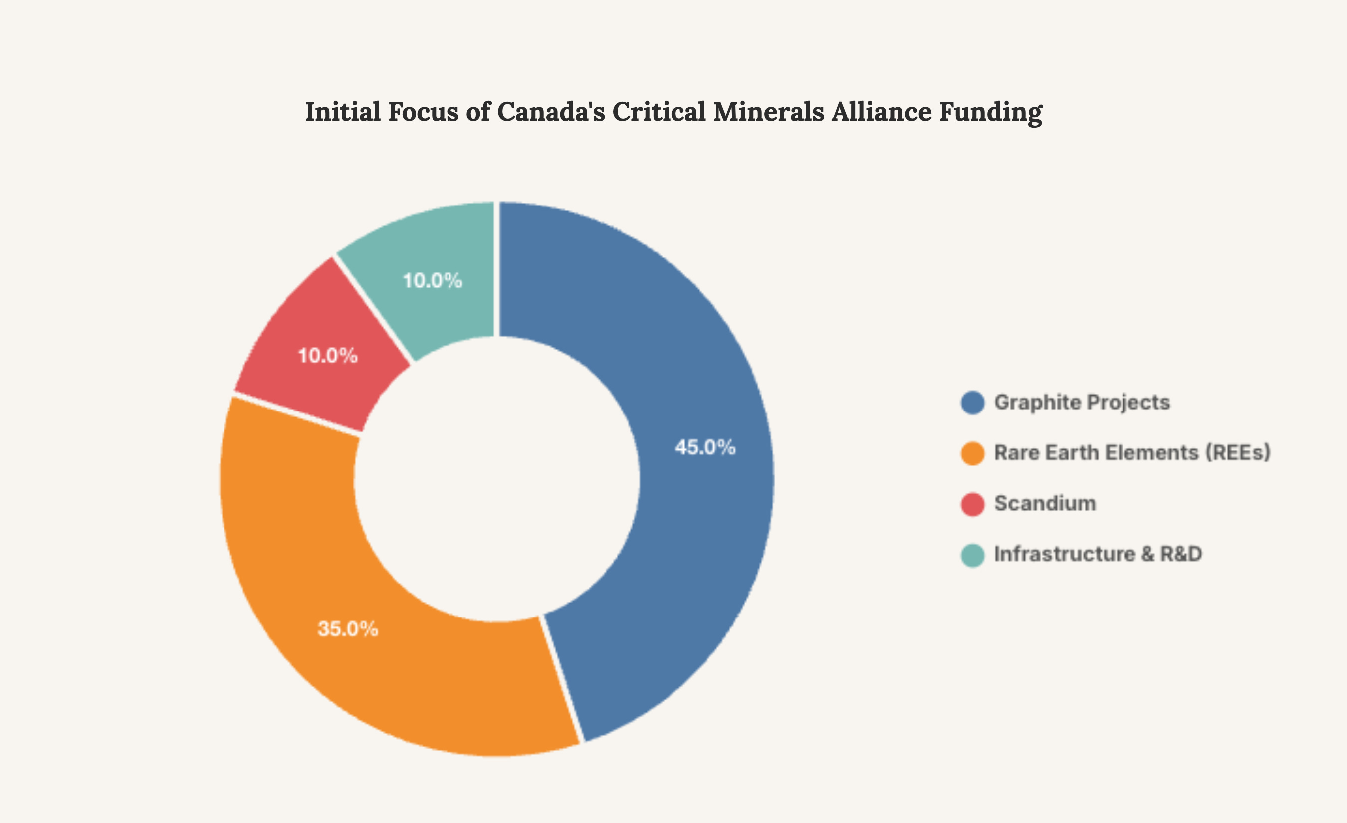 This chart provides a representative breakdown of the strategic focus for the initial C$6.4 billion in project funding. A significant portion is directed towards graphite and rare earth elements, minerals where Chinese market control is most pronounced.