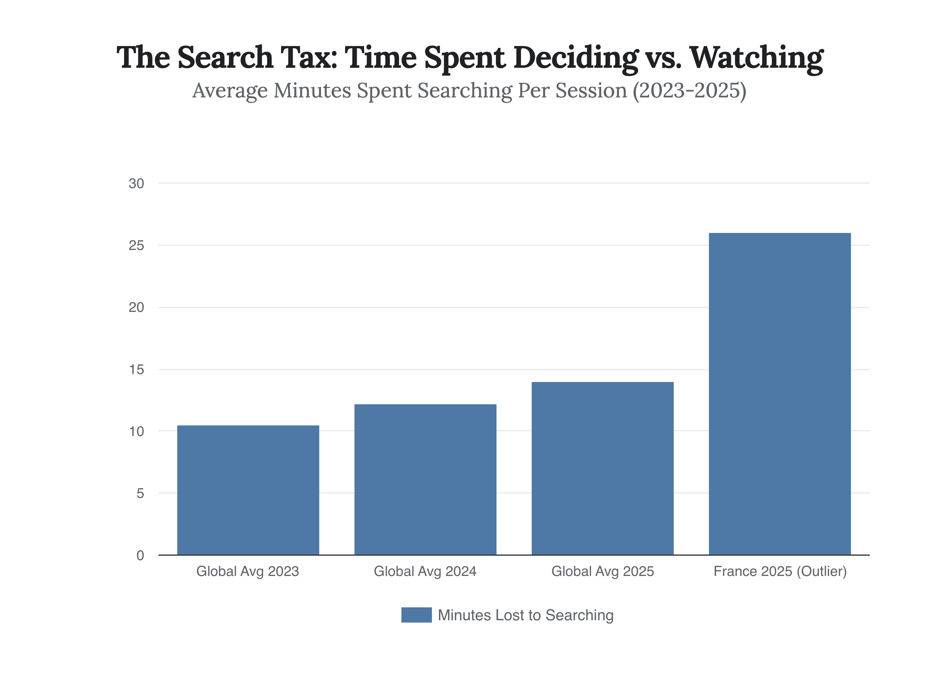 Data from Gracenote’s “2025 State of Play” report reveals a terrifying metric: the average global viewer now spends 14 minutes per session just searching for content. In France, that figure hits 26 minutes—the length of an entire sitcom episode wasted in the purgatory of selection.