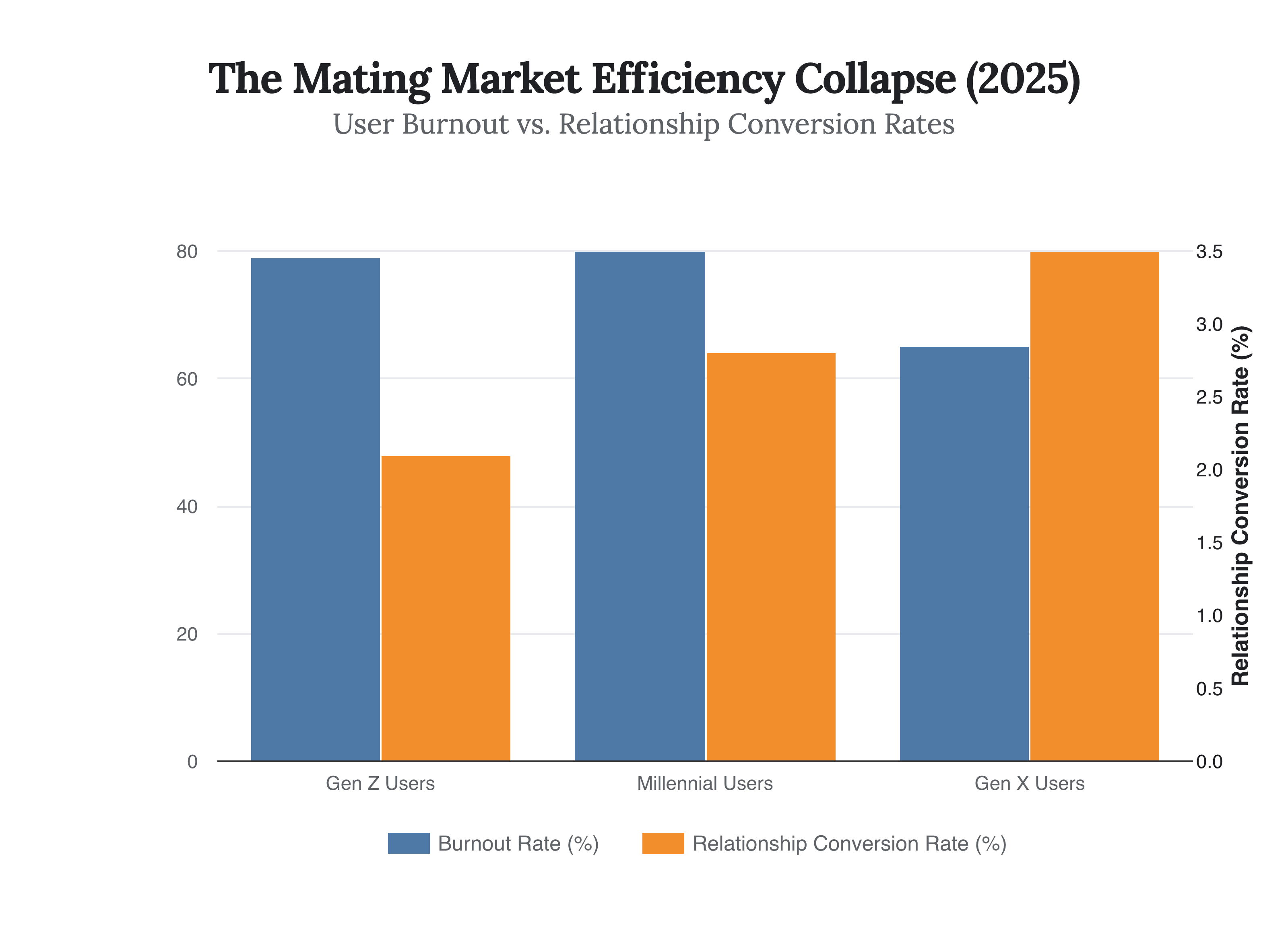 According to Q3 2025 data, Tinder downloads in the U.S. plummeted 14.4% year-over-year, while 78% of active users now report clinical “dating app burnout.” The efficiency gap is staggering: women experience a 30.7% match rate, while men languish at 2.63%, yet only 2.5% of these digital handshakes convert into a relationship.