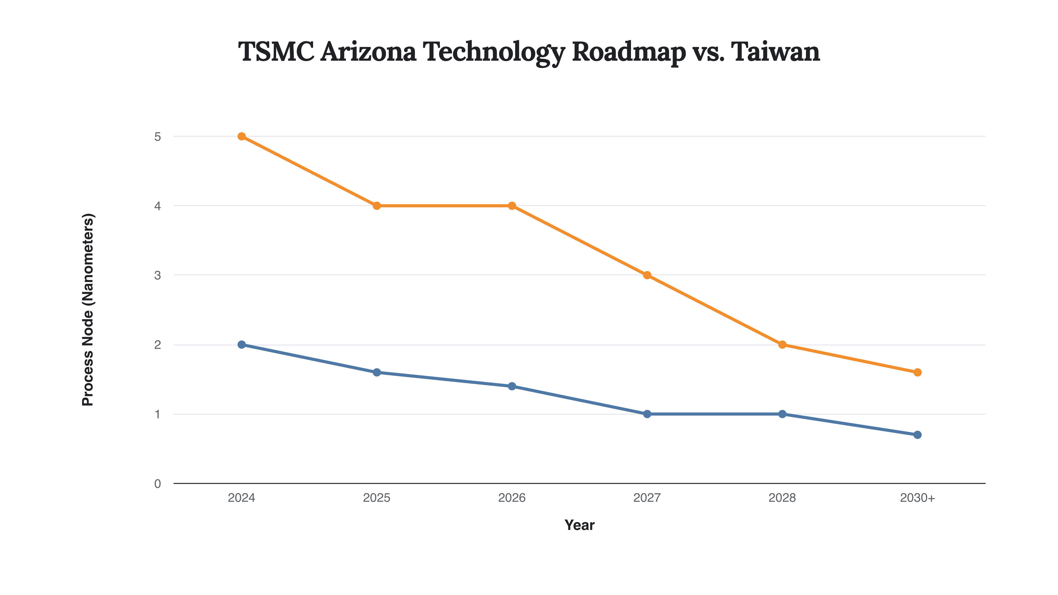 This chart visualizes the planned technology gap between TSMC’s fabs in Taiwan and the new Arizona facilities. While a gap remains, the plan to introduce 2nm and A16 processes demonstrates a significant acceleration for the U.S. site.