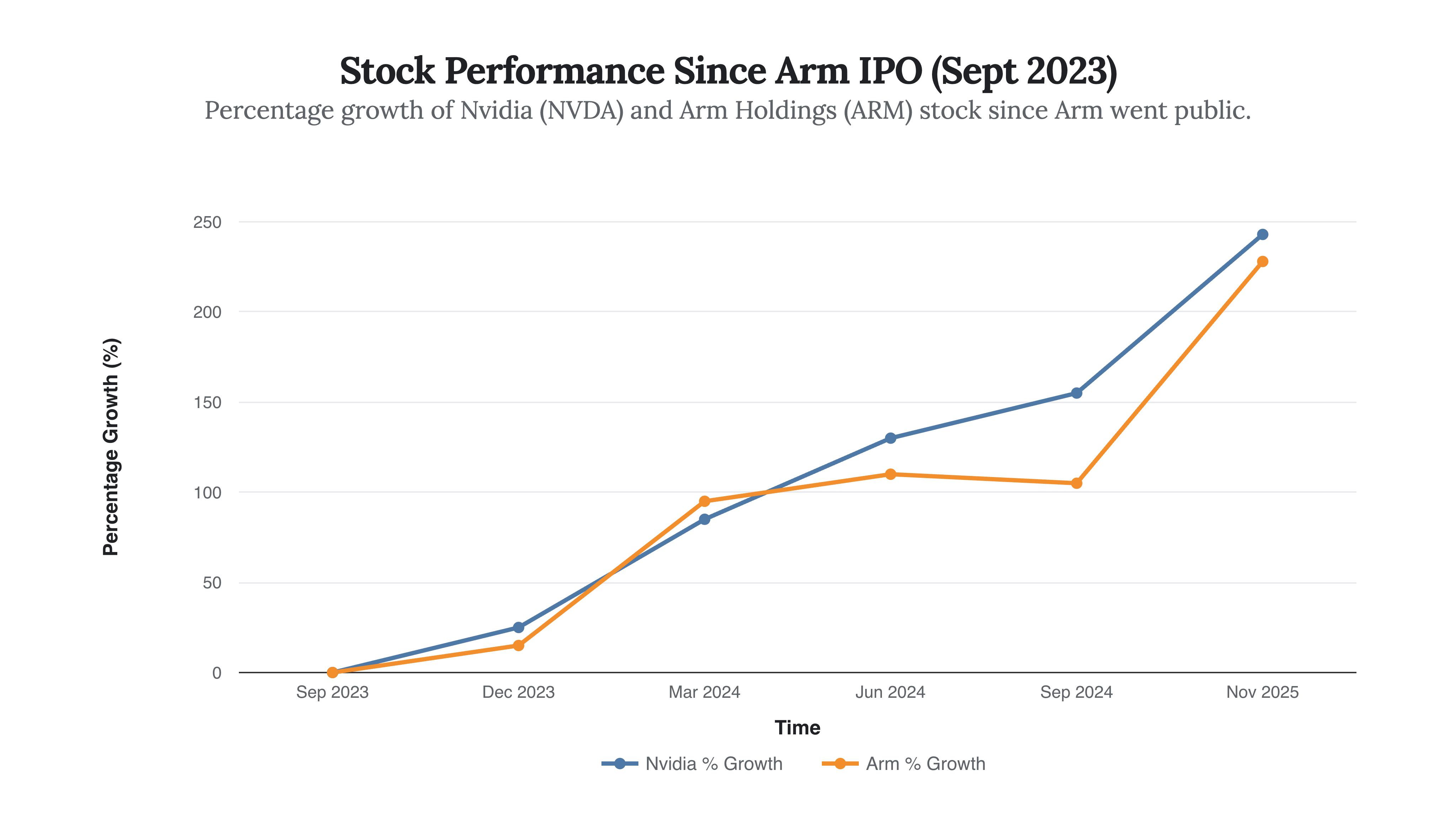 Comparing the Titans: Nvidia’s Runaway Value vs. Arm’s Steady Climb