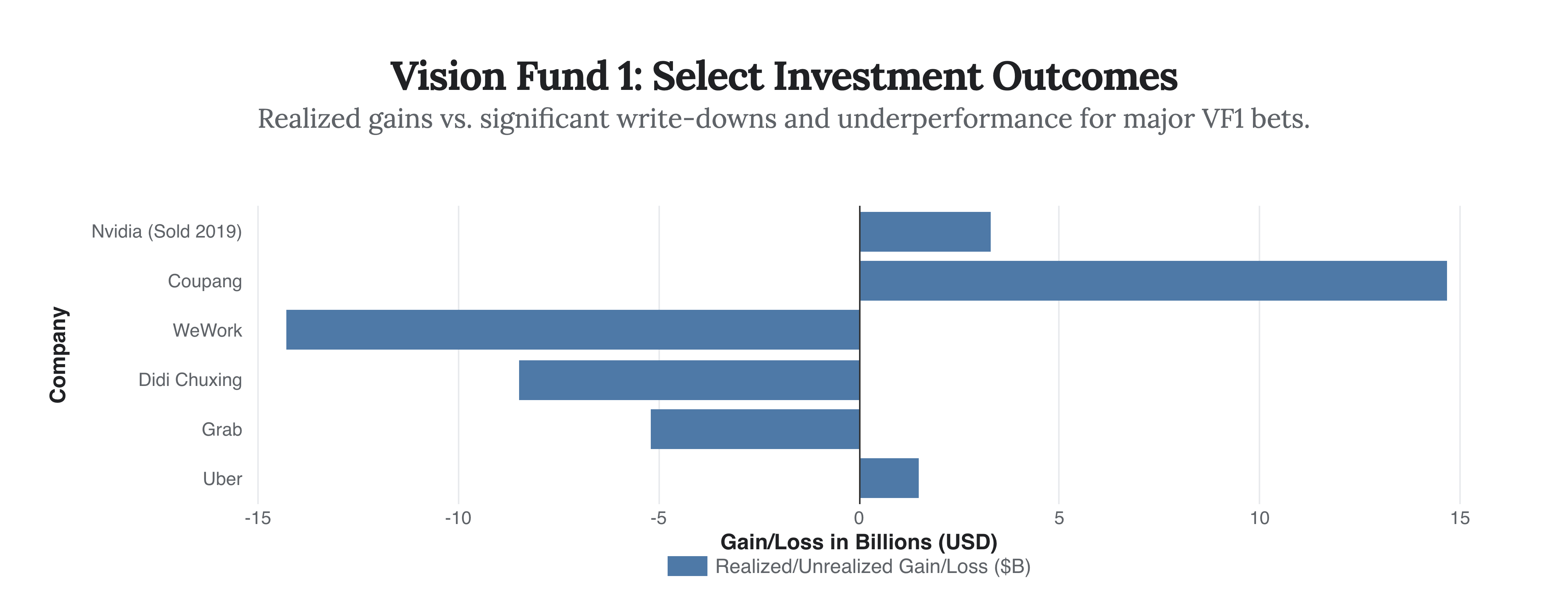 This chart illustrates the mixed performance of some of Vision Fund 1’s most prominent investments, contextualizing the pressure to secure a win with the Nvidia sale.