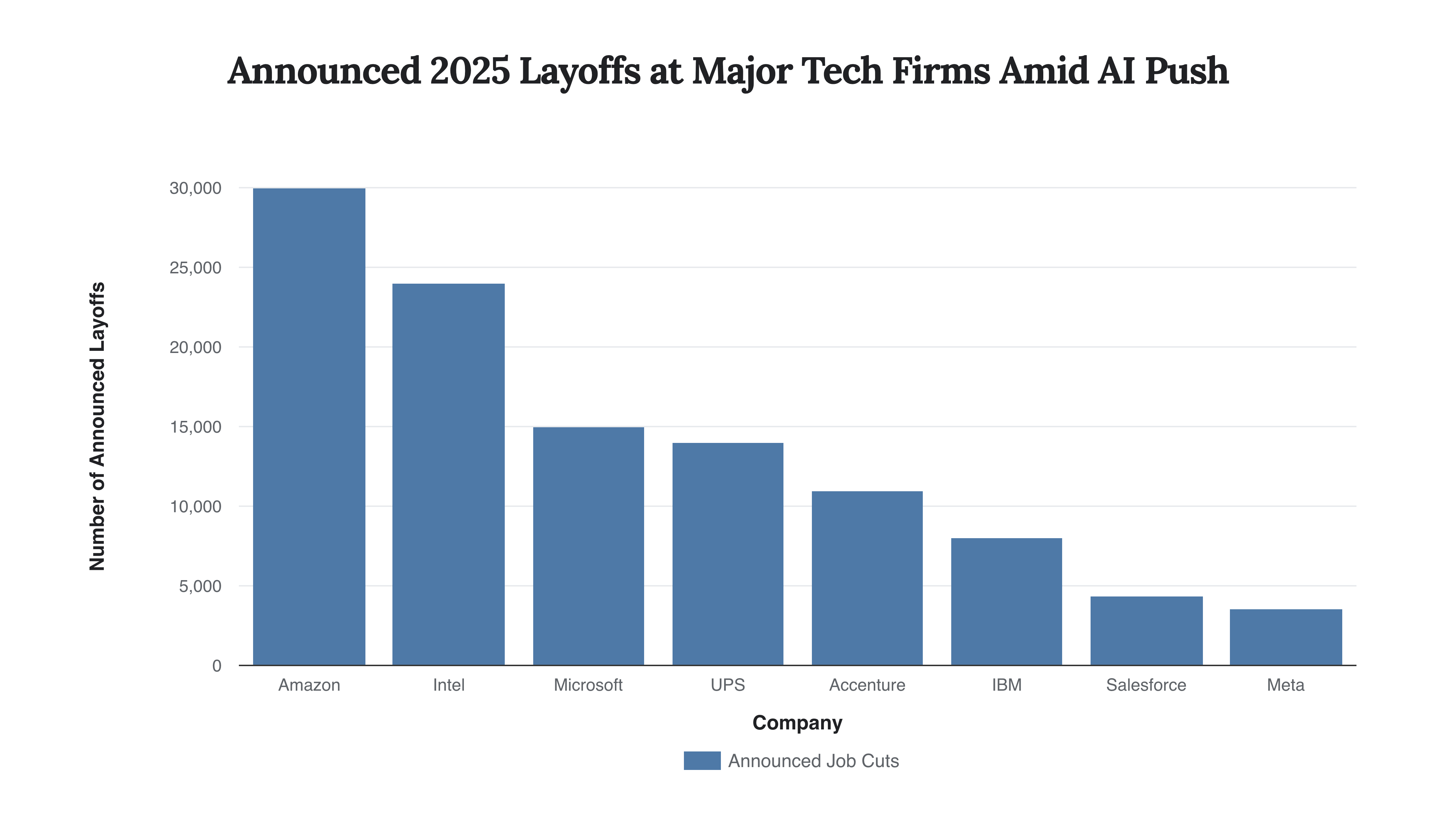 Caption: Major technology and logistics firms have announced significant workforce reductions in 2025, often happening concurrently with massive strategic investments in artificial intelligence and automation.