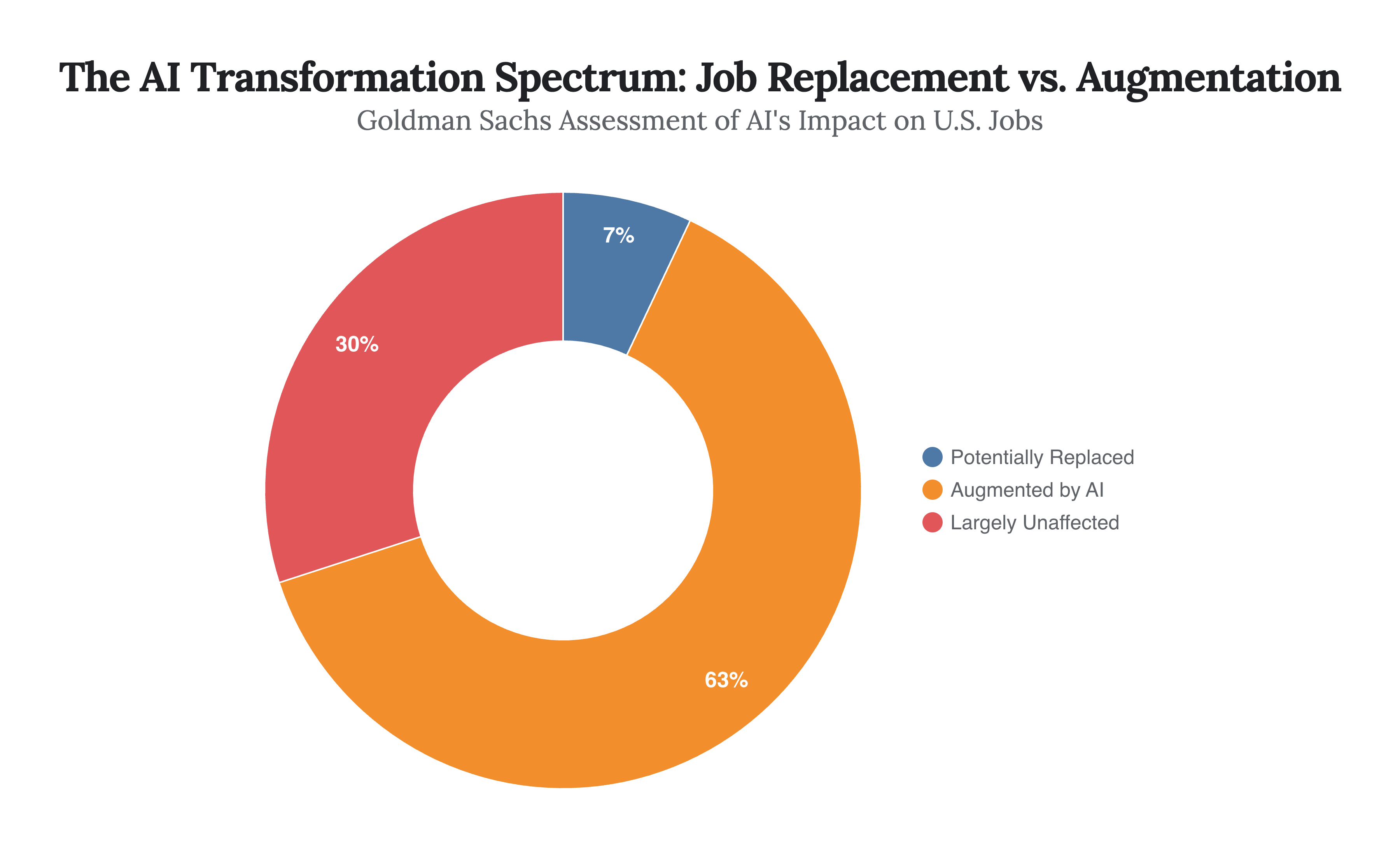 Caption: While the headlines focus on replacement, a significant portion of the workforce (63%) will see their jobs complemented and changed by AI, rather than eliminated entirely. This highlights the dual nature of the transition, involving both displacement and transformation.