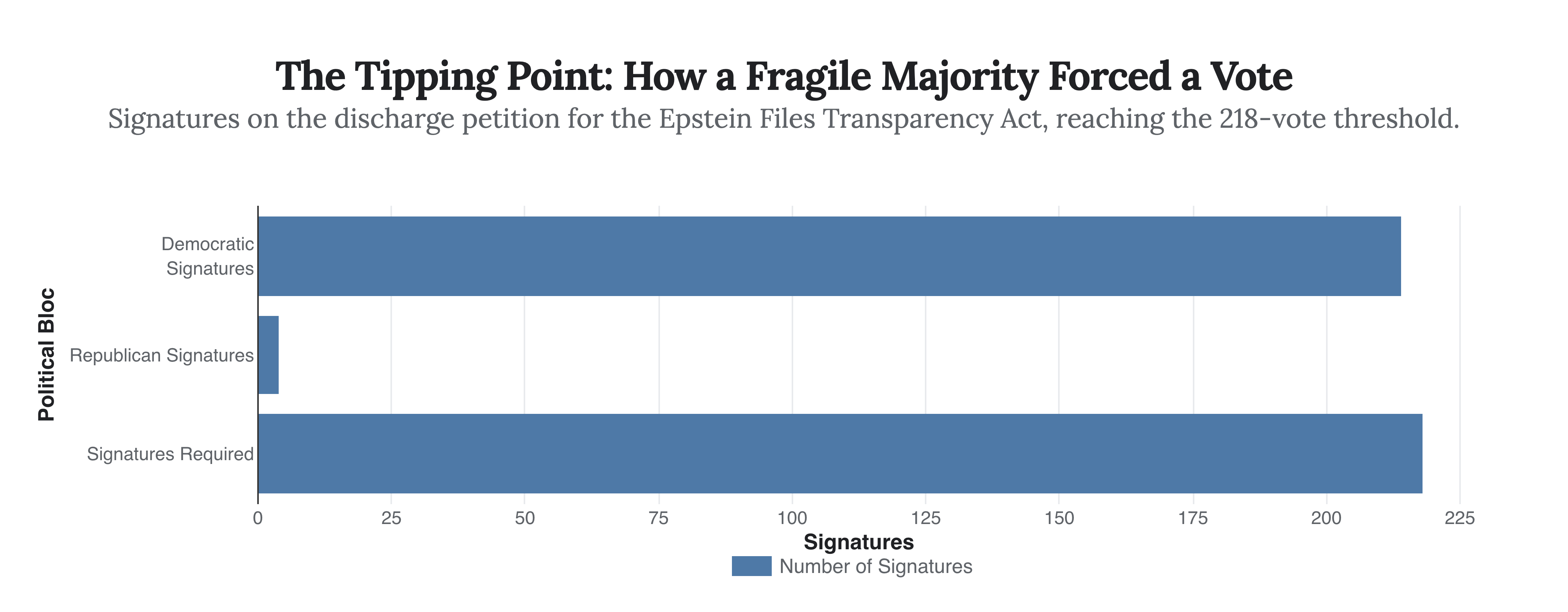 The passage of the Epstein Files Transparency Act was not achieved through conventional channels. It was forced into existence by a procedural gambit that highlights a growing impatience with institutional gatekeepers. Understanding this mechanism is critical to appreciating the political forces now in play.