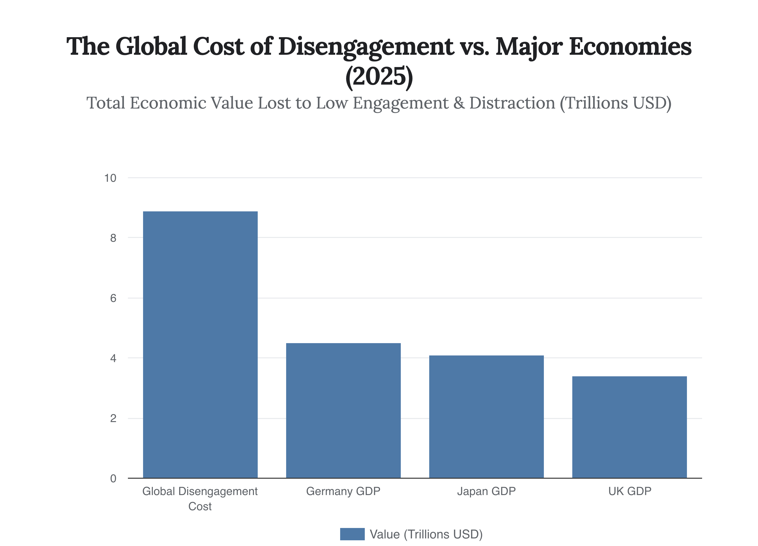Intelligence gathered from the Q4 2025 and early 2026 landscape indicates that the cost of workplace distraction has metastasized from a human resources concern into a tier-one strategic risk. The headline figure—$650 billion in annual losses for U.S. businesses alone—is a conservative floor, not a ceiling. When extrapolated globally to include the cost of low engagement and “Digital Debt,” the figure swells to an agonizing $8.9 trillion, roughly 9% of Global GDP.