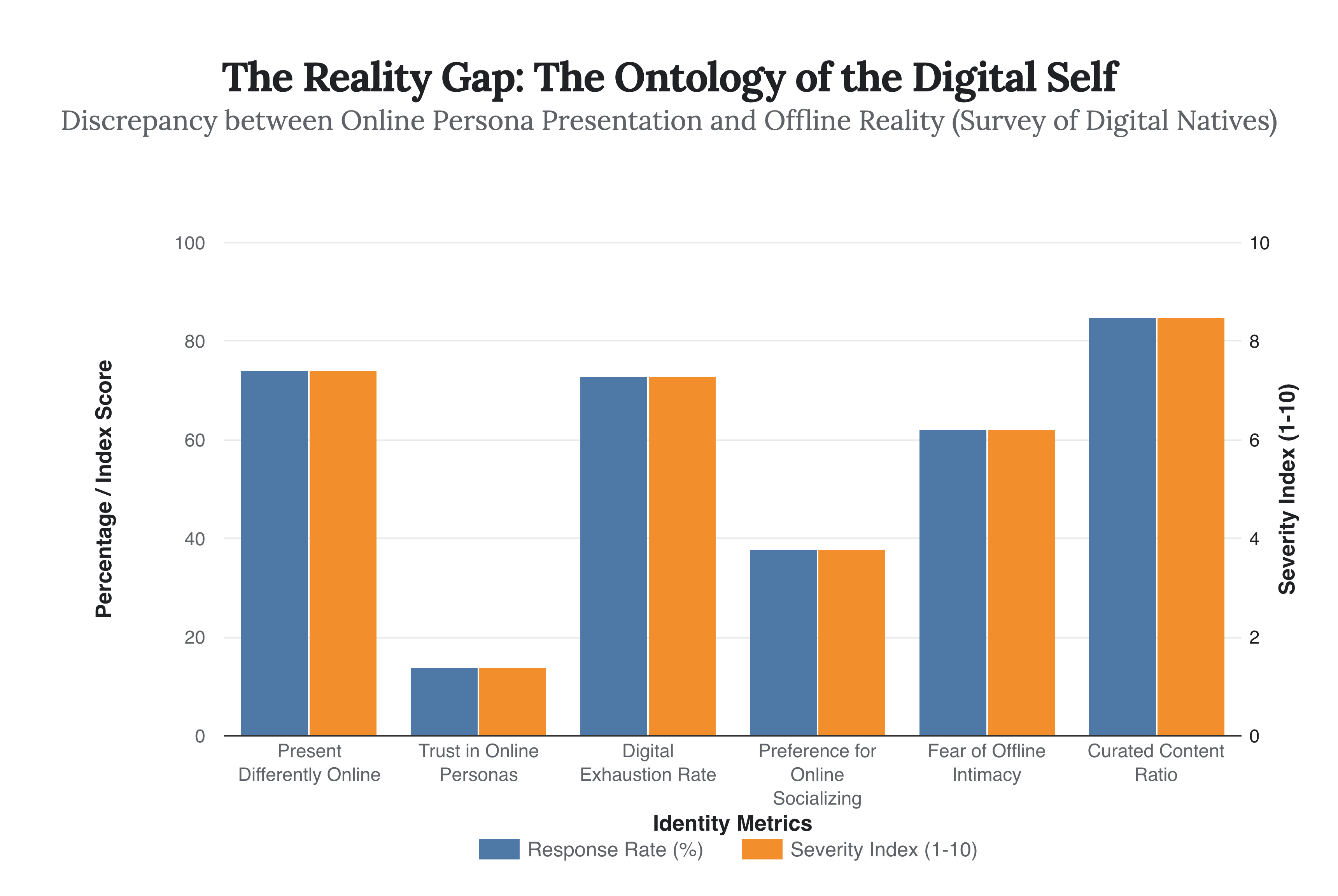 The strategic implication here is profound. When 74% of a generation admits to a fundamental disconnect between their digital and physical selves, we are no longer dealing with “users.” We are dealing with a population engaging in mass dissociation. The “Digital Exhaustion” rate of 73% is the direct result of the energy required to sustain two separate existences. The “Phantom Self” eats the energy of the “Real Self,” leading to burnout, ghosting, and the collapse of traditional workforce reliability.