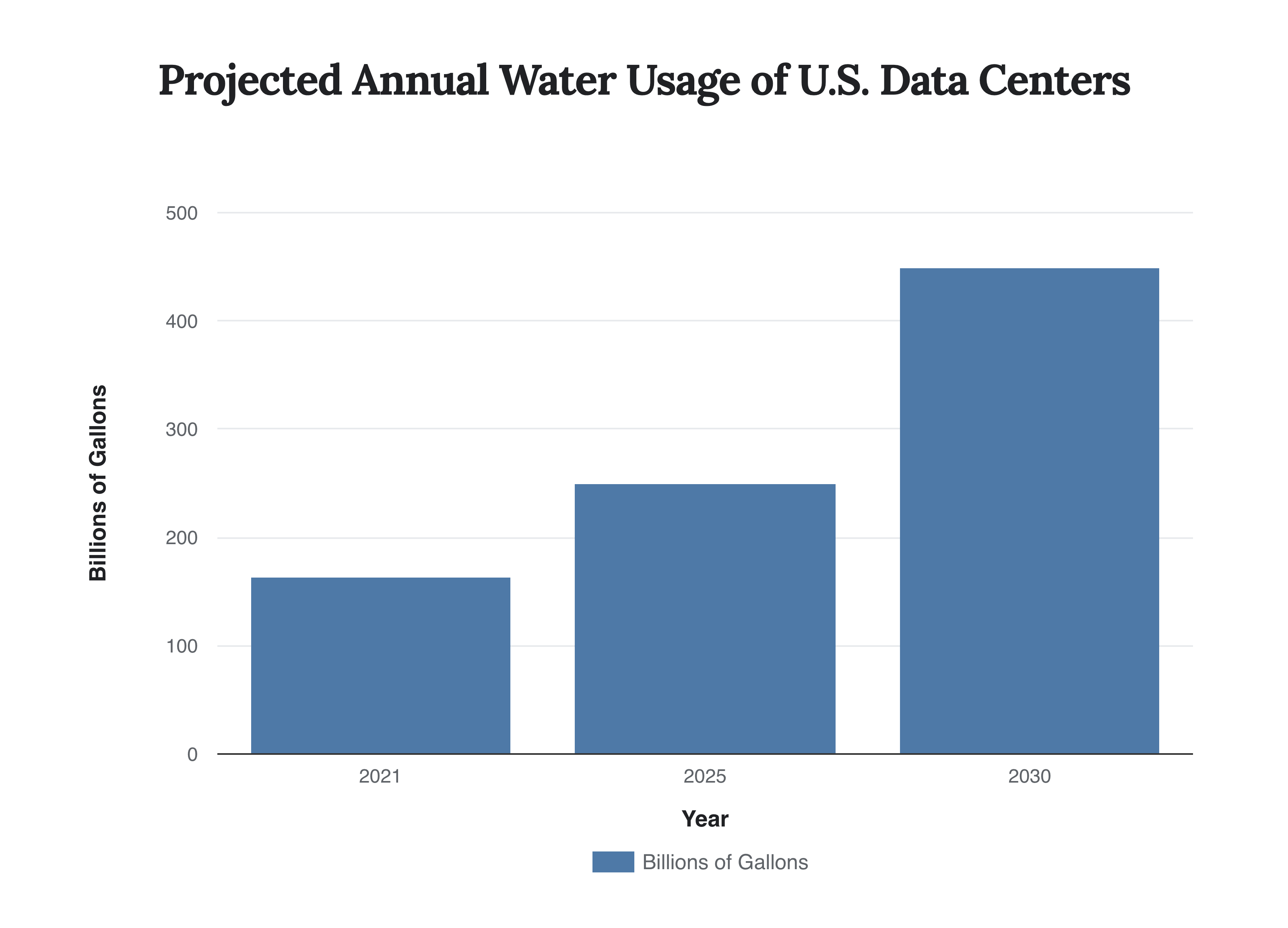 Caption: This chart illustrates the projected increase in annual water consumption by data centers in the United States, a hidden environmental cost of the AI boom.