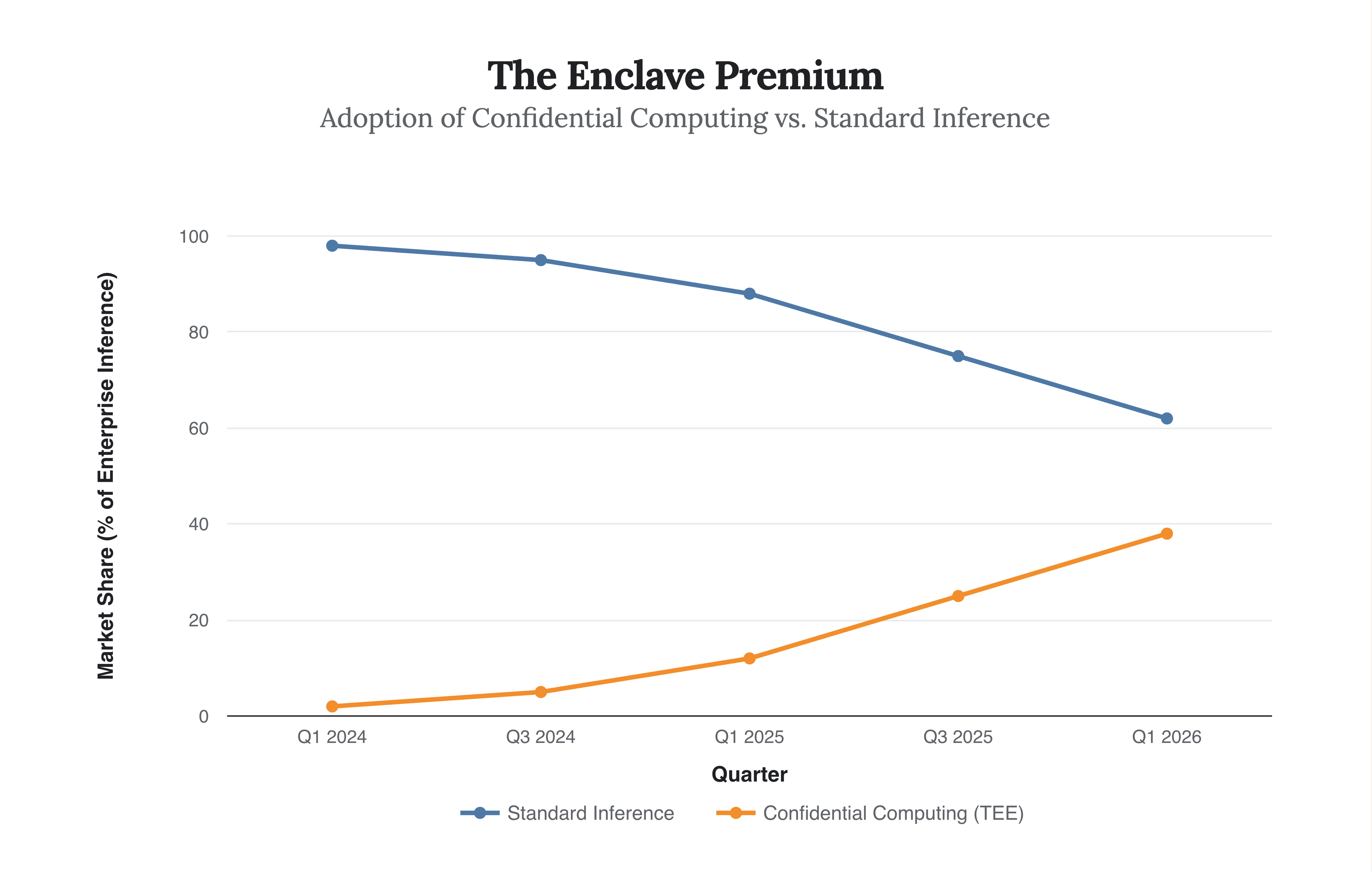 The “Scenario Planning” lens reveals this as the bifurcated future: High-value, autonomous agents will only run in TEEs. Low-value chatbots will run on standard compute. The cost of security is becoming a hardware line item.
