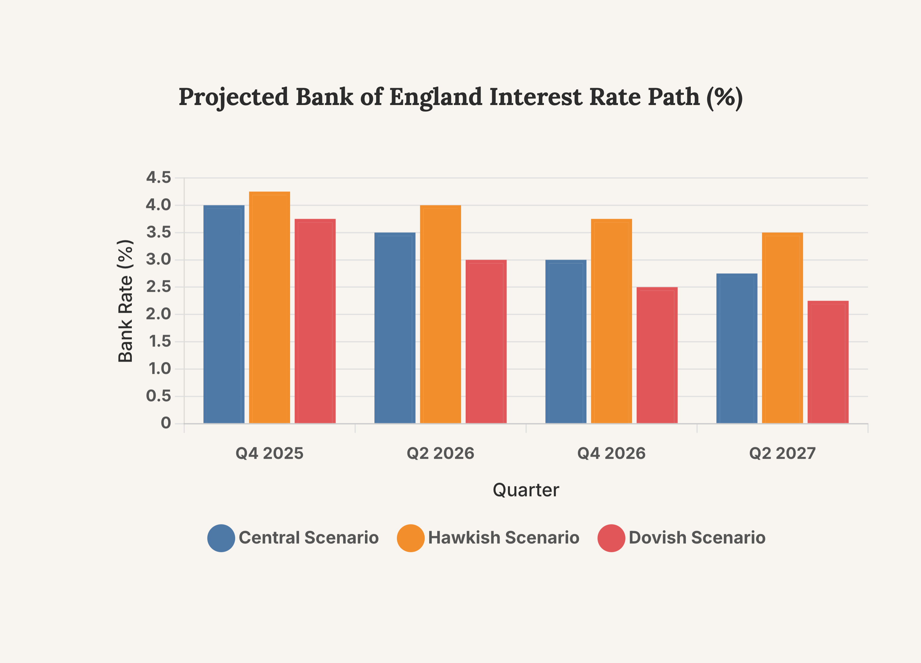 Two plausible scenarios exist for the Bank Rate’s trajectory. The central scenario, anticipated by most market participants, involves a slow and steady reduction in the Bank Rate, potentially reaching around 3% by 2026. However, a more ‘hawkish’ scenario could see rates held higher for longer if inflation proves more persistent than expected. Conversely, a ‘dovish’ scenario could see more rapid cuts if the economy slows more sharply than currently forecast. The finely balanced nature of the MPC’s recent decisions suggests that both alternative scenarios remain distinct possibilities.
