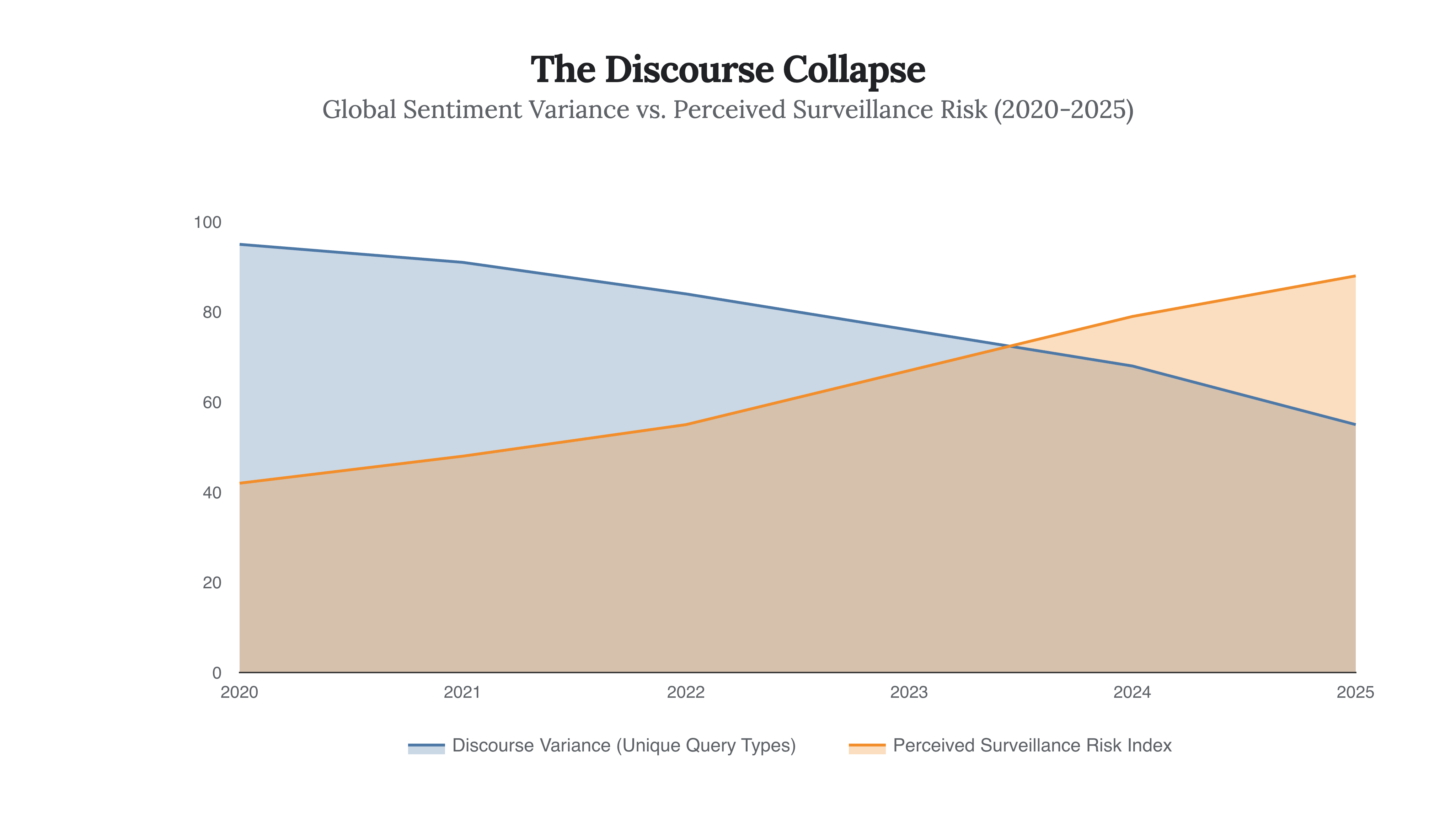 This self-censorship manifests as a collapse in “Search Query Variance.” People are searching for safer topics, using neutral language, and avoiding exploratory intellectual risks. The digital public square is becoming a hall of mirrors where everyone repeats the safe, consensus opinion to avoid being flagged by a sentiment analysis bot.