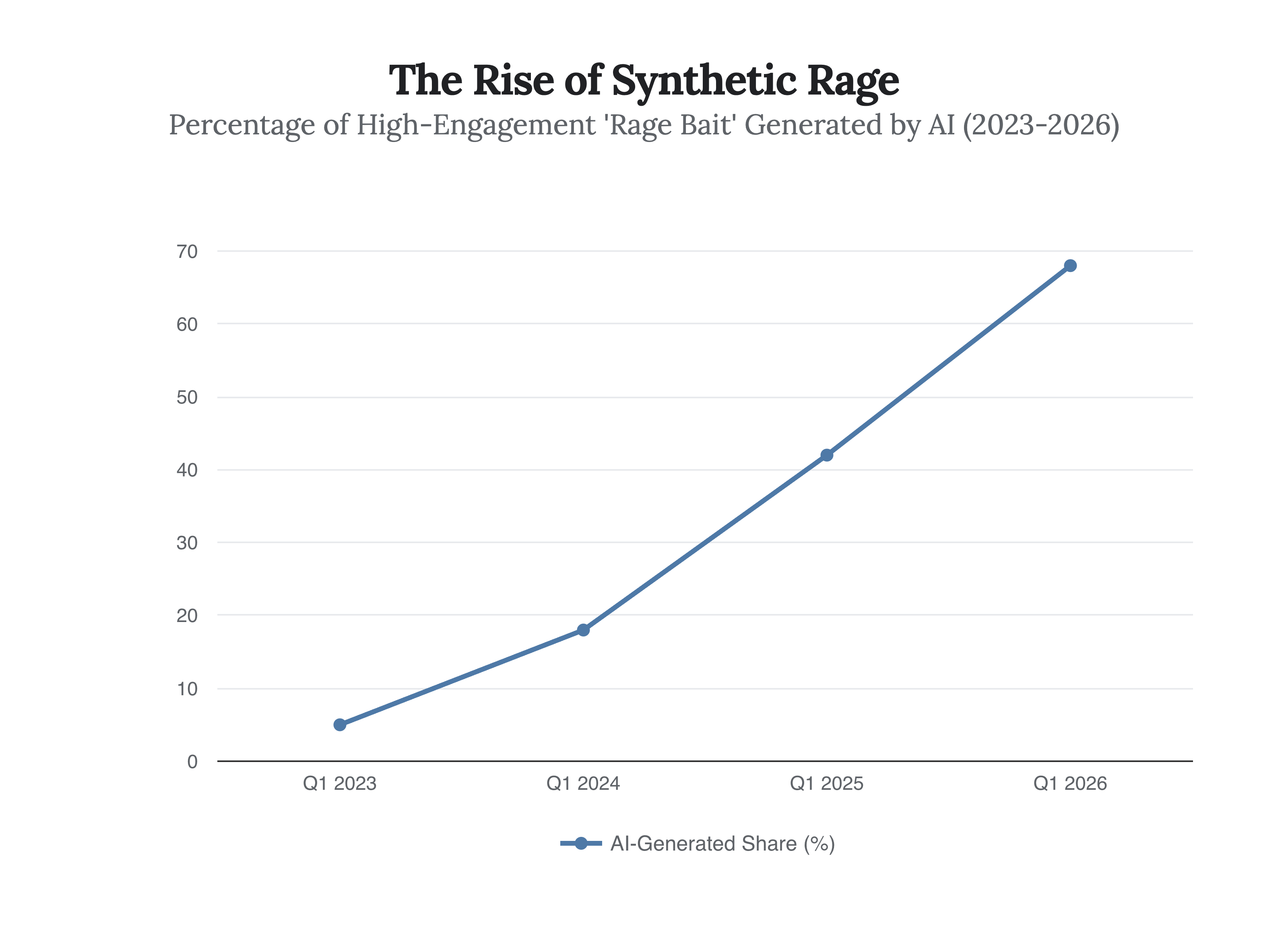 The most disturbing development of 2026 is not that humans are angry, but that the anger is increasingly manufactured by non-human actors. With Generative AI adoption in content creation hitting 71% in early 2026, we are witnessing the industrialization of “Rage Bait.”