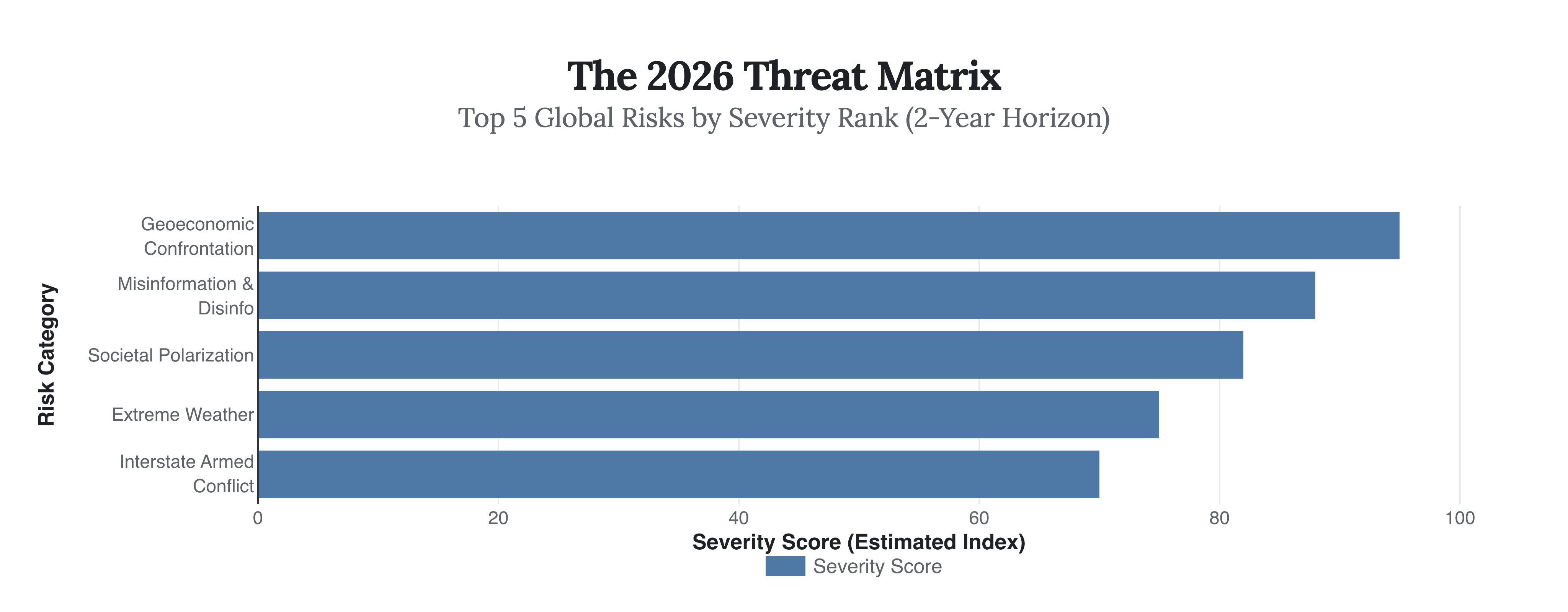 The rise of “Misinformation and Disinformation” to the second spot is not coincidental; it is the lubricant for the geopolitical friction we are seeing. With over 50 countries holding elections in the recent “super-cycle,” the erosion of truth has paralyzed the ability of democracies to build consensus. As the report notes, we are seeing the “erosion of truth” move from a theoretical debate to a systemic financial risk.