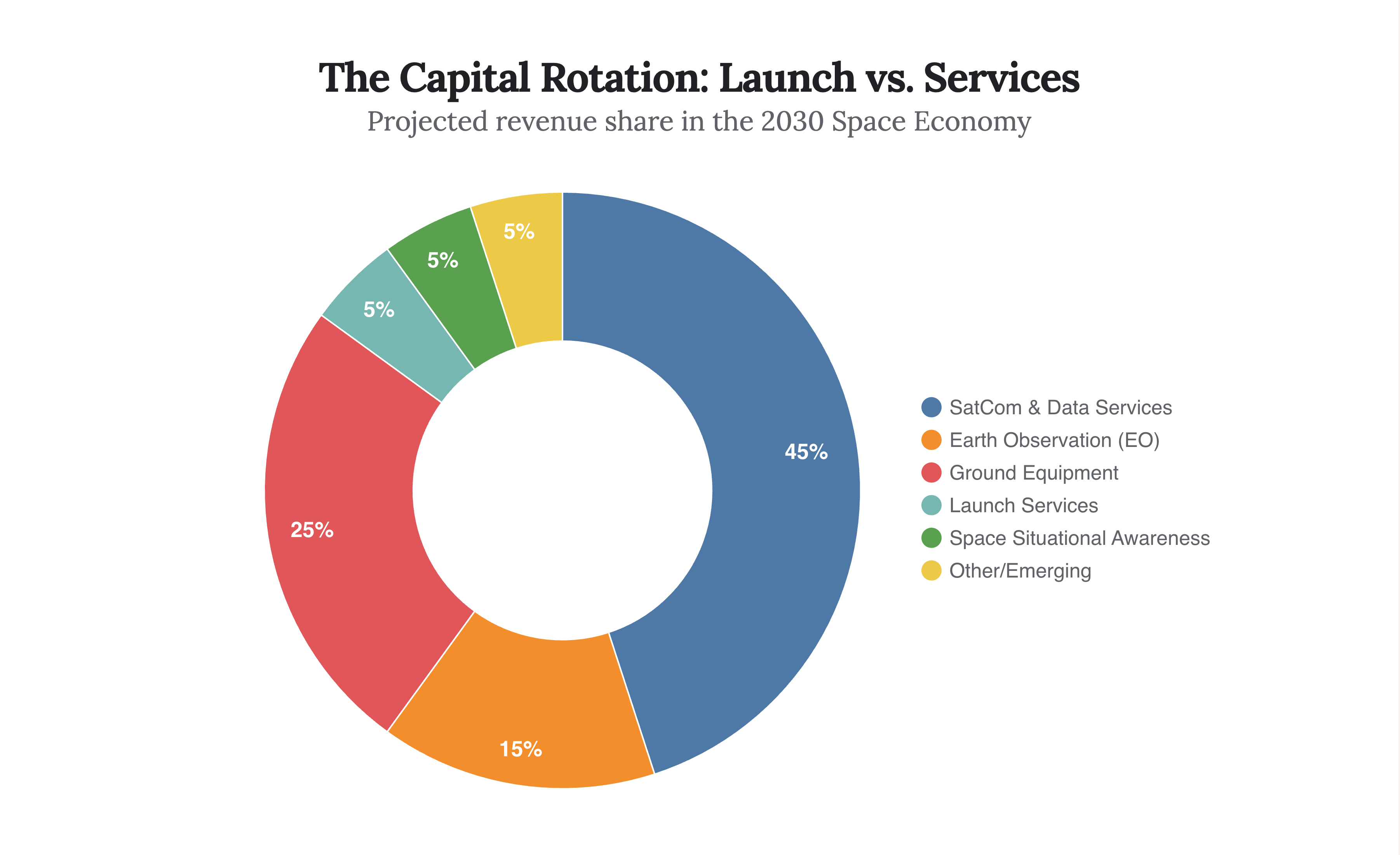 As the chart indicates, launch services—despite the media hype—will comprise a minority of the total value capture. The launch is a commodity; the value is in the bitstream. The “Watch Point” for investors is the emergence of secondary markets for orbital data. Just as the Bloomberg Terminal aggregated financial data, we will see the rise of platforms that aggregate multi-modal space data (optical, SAR, RF, thermal) into actionable intelligence feeds for commodities traders and hedge funds.