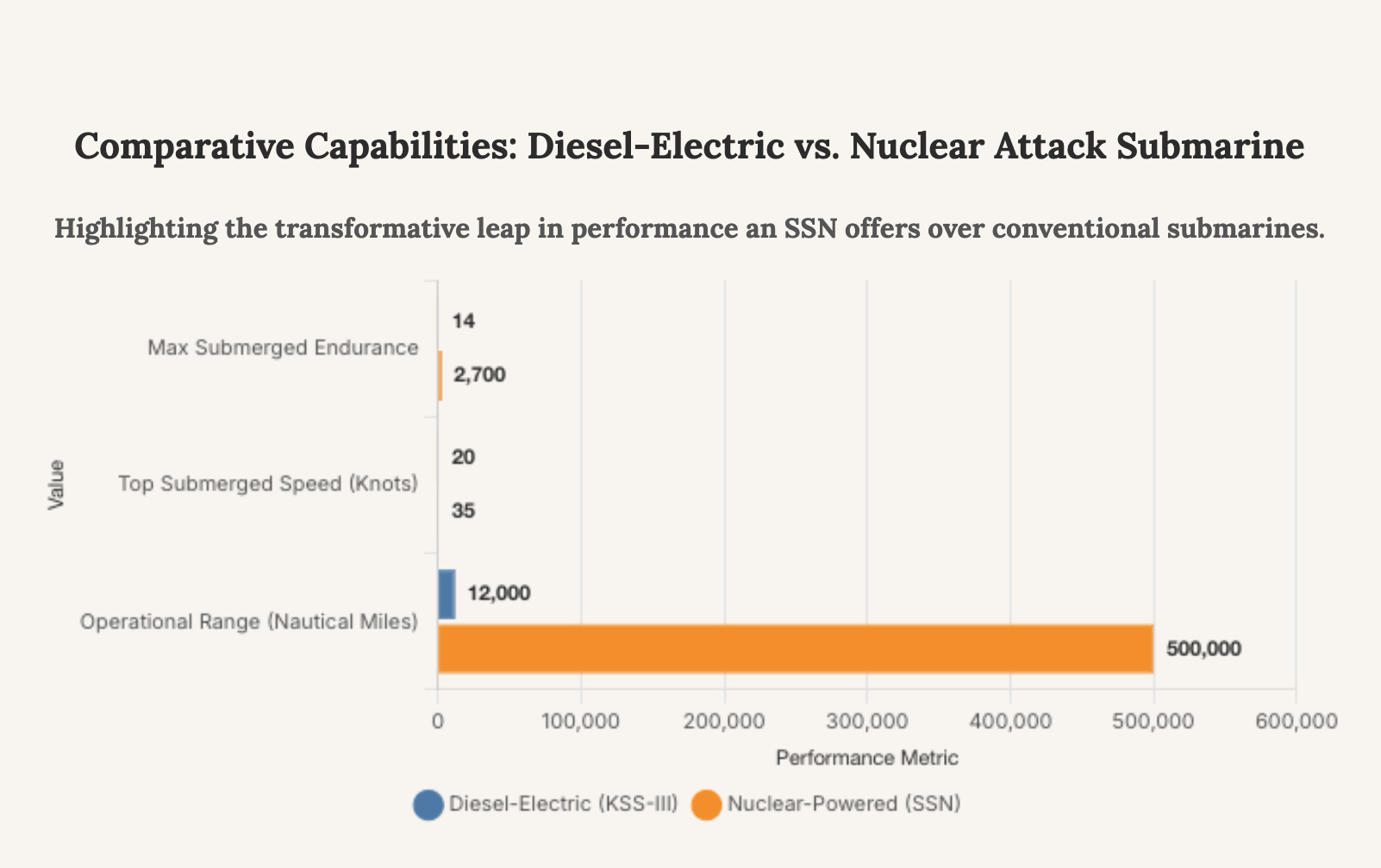 The difference in submerged endurance is the most critical strategic advantage. An SSN’s ability to remain underwater for months, limited only by crew provisions, makes it a fundamentally different and more potent asset for anti-submarine warfare and deterrence patrols.