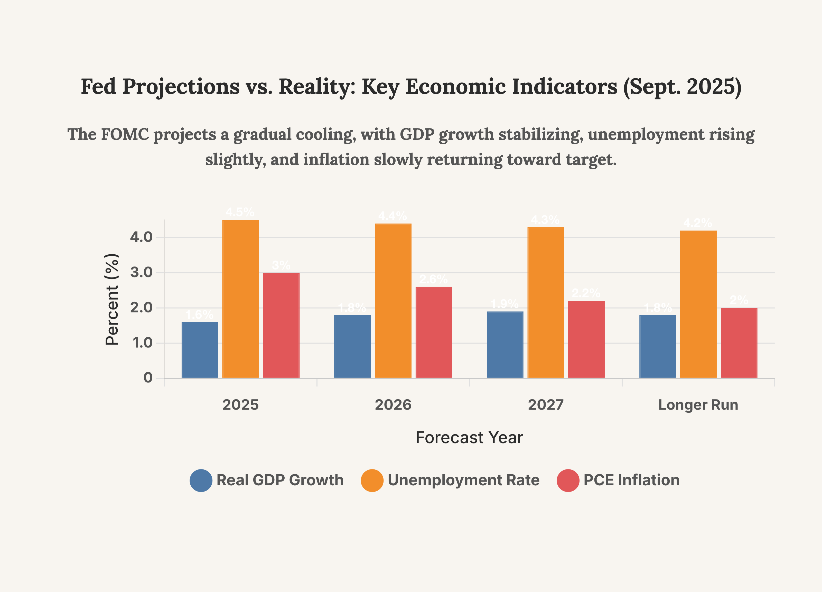 The Soft Landing (Base Case): Economic growth continues to moderate, the labor market cools without collapsing, and inflation gradually returns to target by 2026. In this scenario, the Fed holds rates steady for several quarters before beginning a slow, measured cutting cycle in the latter half of 2026.