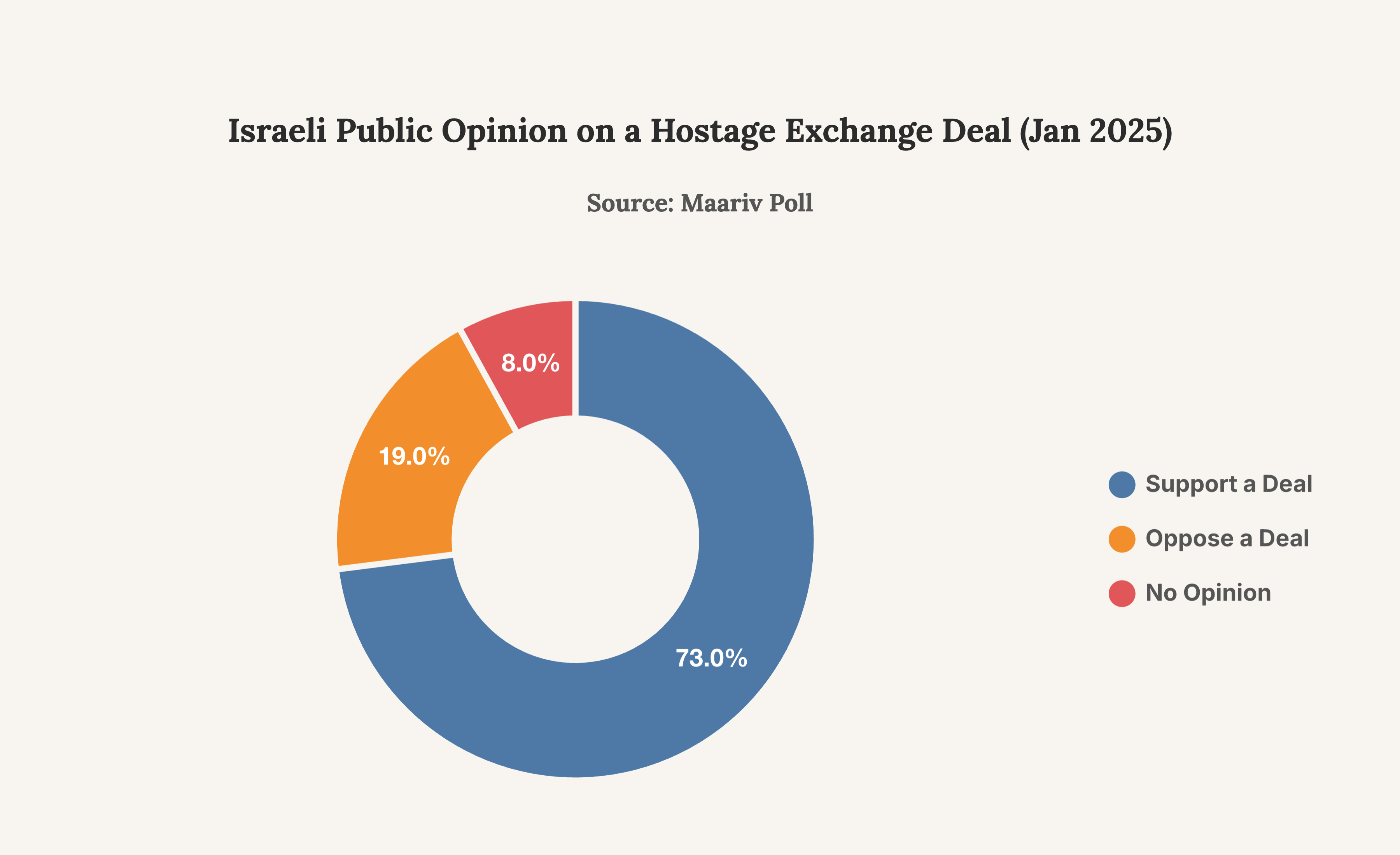 Caption: Public support for a hostage deal in Israel is strong overall, but polling reveals a significant partisan divide. While a majority across the spectrum favors an agreement, opposition is concentrated among voters of the governing coalition parties, creating immense political pressure on the leadership.