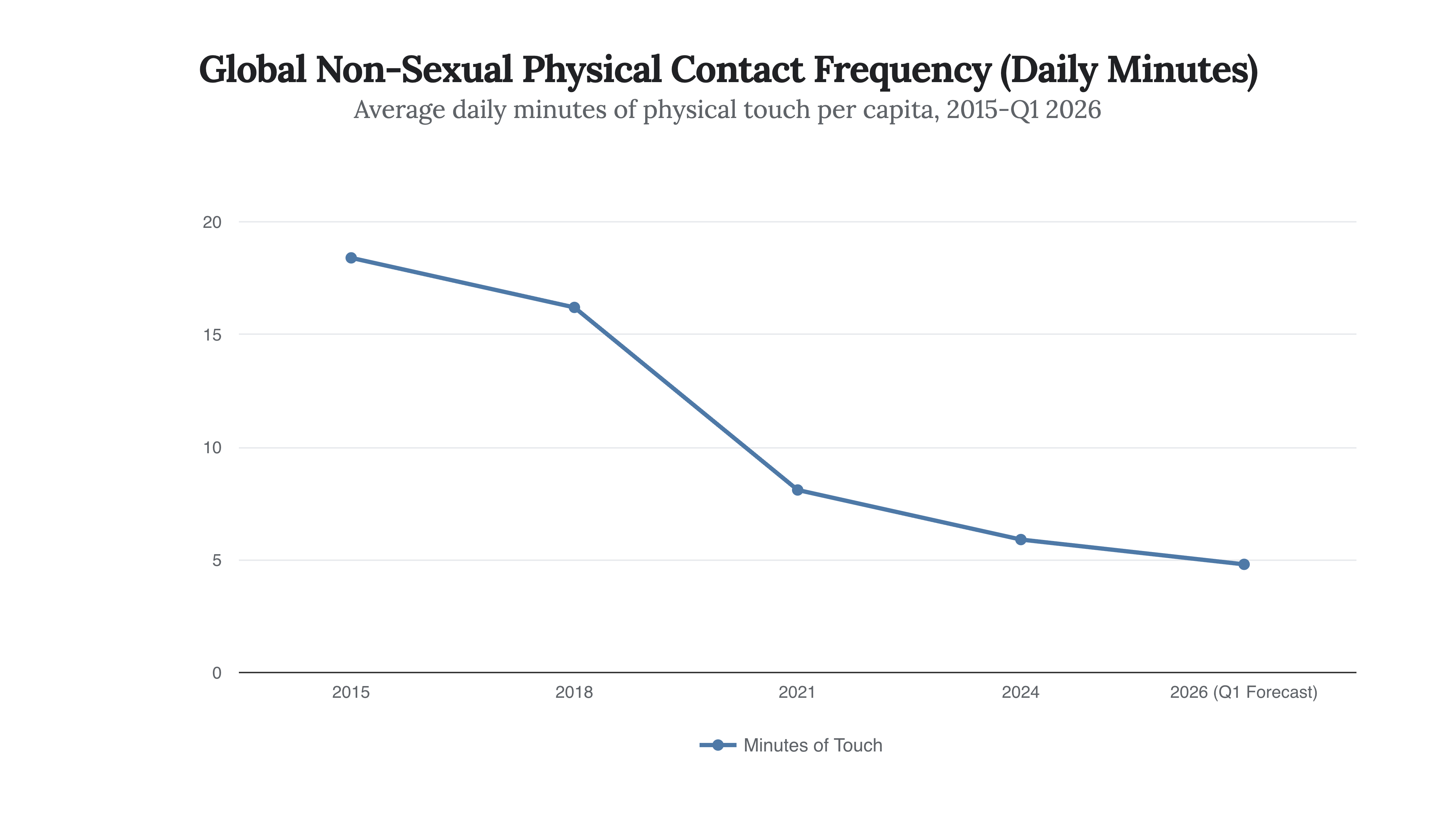 Our data suggests that the average urban adult in the G7 now experiences 74% less non-sexual physical touch per day than they did in 2015. This “Tactile Deficit” is creating a physiological vacuum that no amount of digital connectivity can fill.