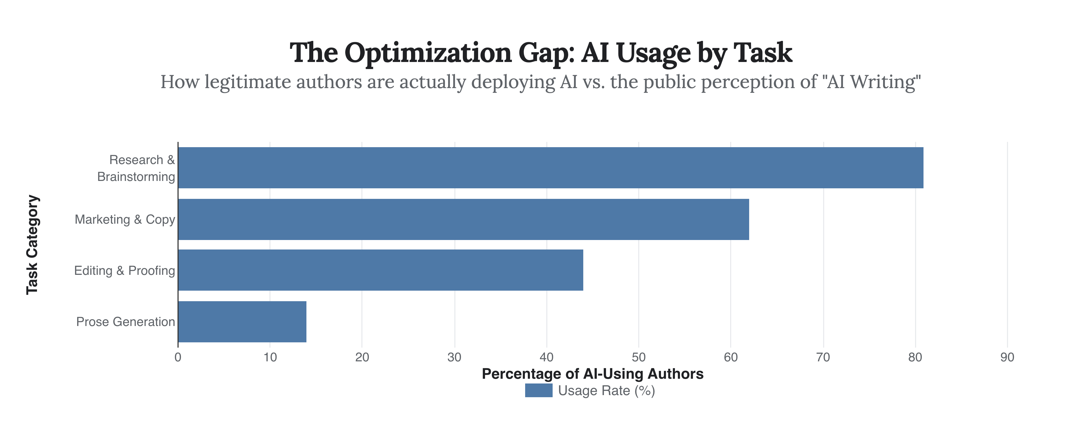 Nearly half of independent authors have integrated AI into their process, but arguably not for the “writing” itself. Digging deeper into the data reveals that 81% of these adopters use the technology for research and brainstorming, rather than prose generation. They are using AI to analyze their own plots, check for inconsistencies, or generate marketing copy. The tool is being used to optimize the business of writing, even as the art of writing remains human-centric for this group.