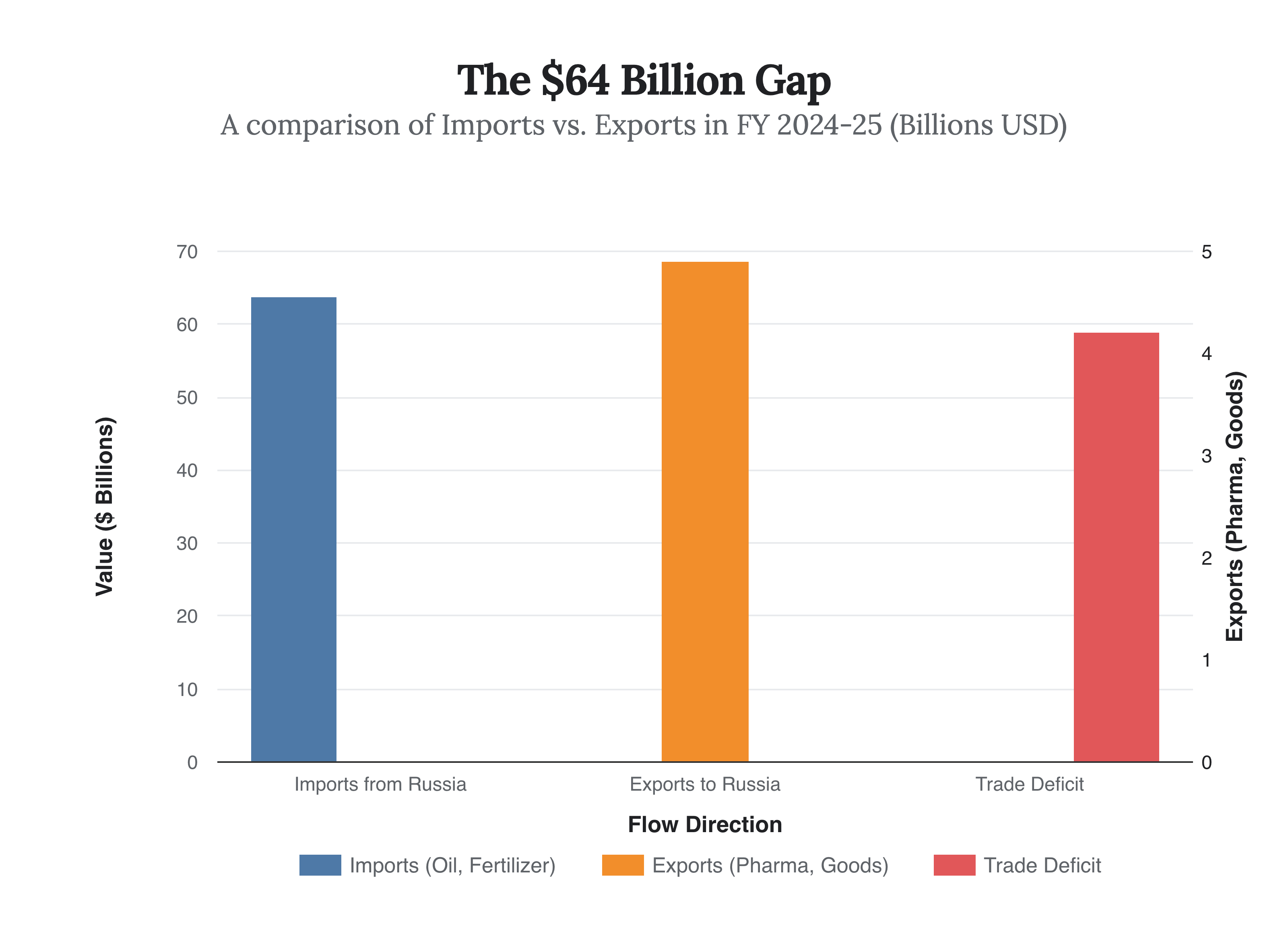 The disparity is stark. While Russian oil flows freely into Gujarat’s ports, Indian goods are trickling into St. Petersburg. The chart below visualizes this massive disconnect, which has become the single biggest hurdle in the “Vision 2030” roadmap.