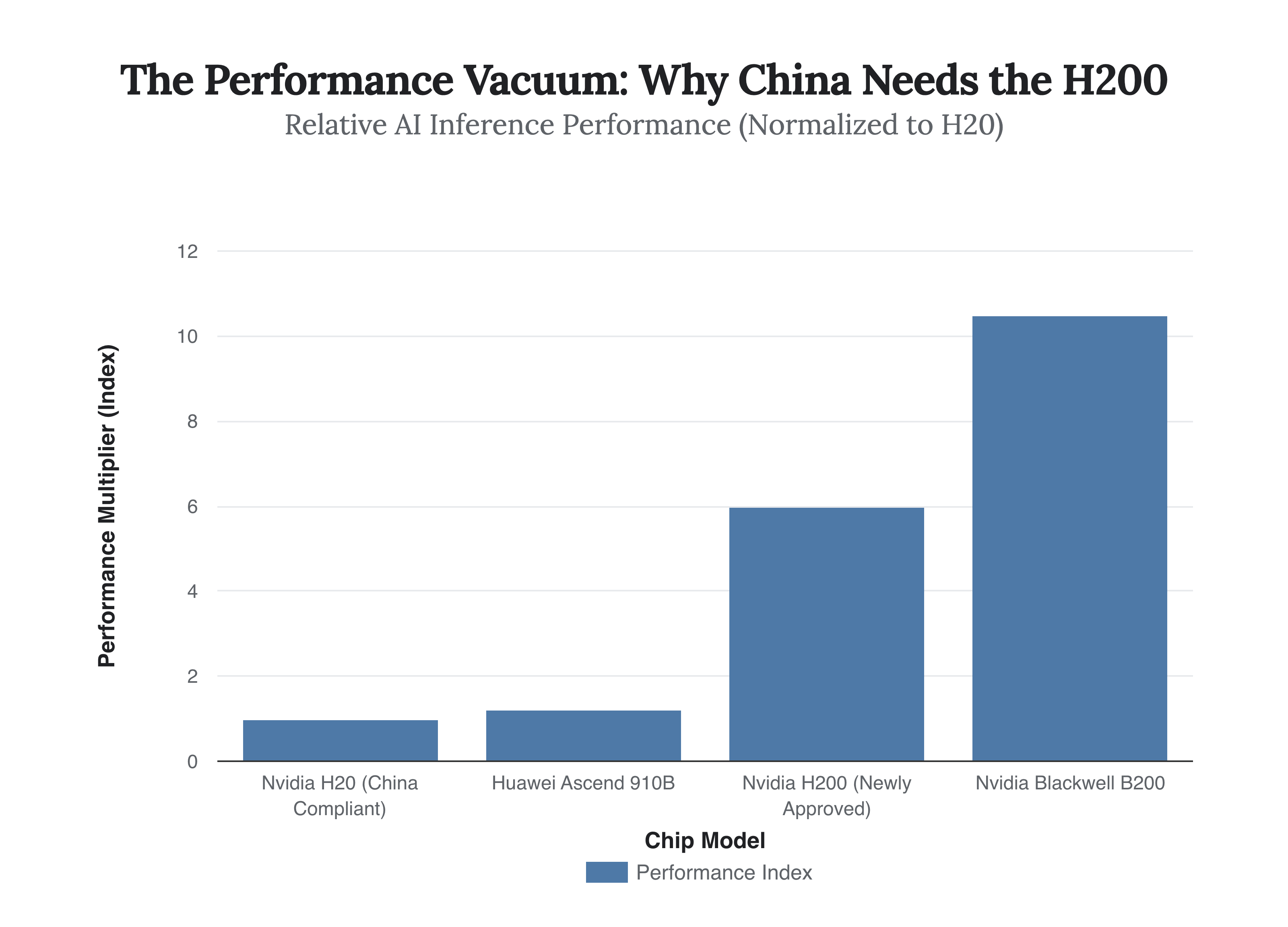 “The H200 is six times ahead of the China-destined H20 in performance. For Chinese firms, this isn’t just an upgrade; it’s the difference between staying competitive in LLM training and falling a generation behind.”