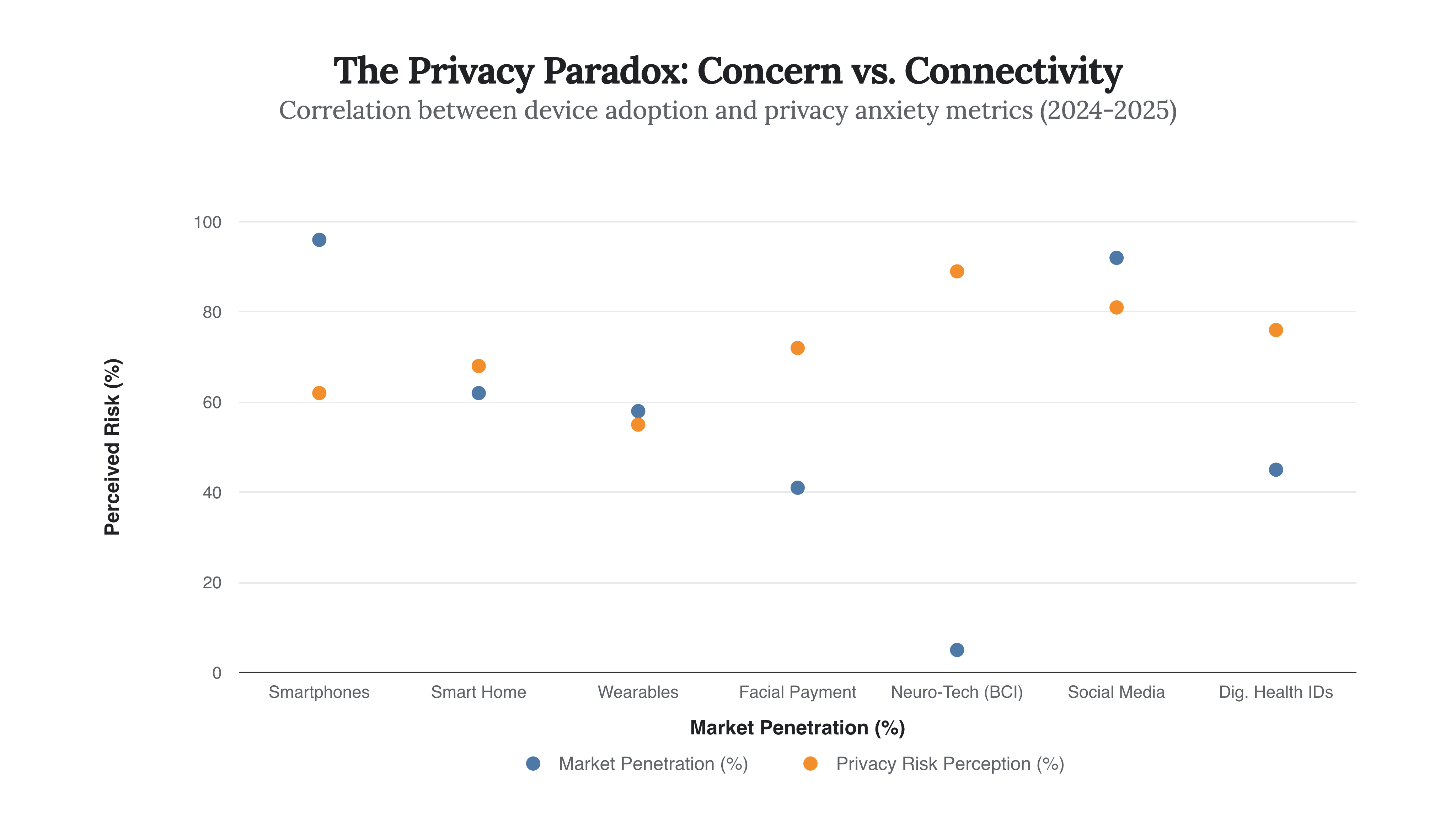 The Privacy Fatigue is real. Despite 81% of consumers stating that the risks of data collection outweigh the benefits, behavior tells a different story. We see a profound “Privacy Paradox” where resignation has set in. Users are trading their neural and biometric sovereignty for marginal gains in convenience.